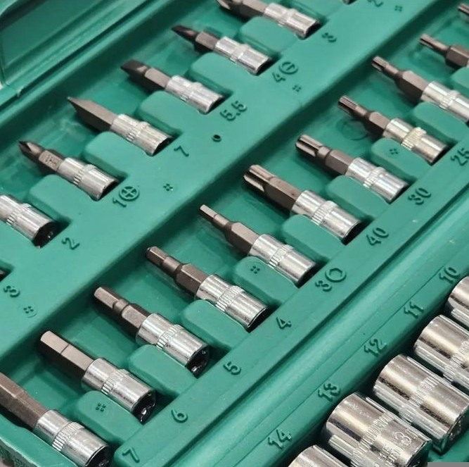 شامل سریهای متنوع، دسته بکس جغجغهای، دسته پیچگوشتی، رابط و آچار کشویی است. مناسب برای تعمیرات خودرو، لوازم خانگی و کارهای فنی روزمره.