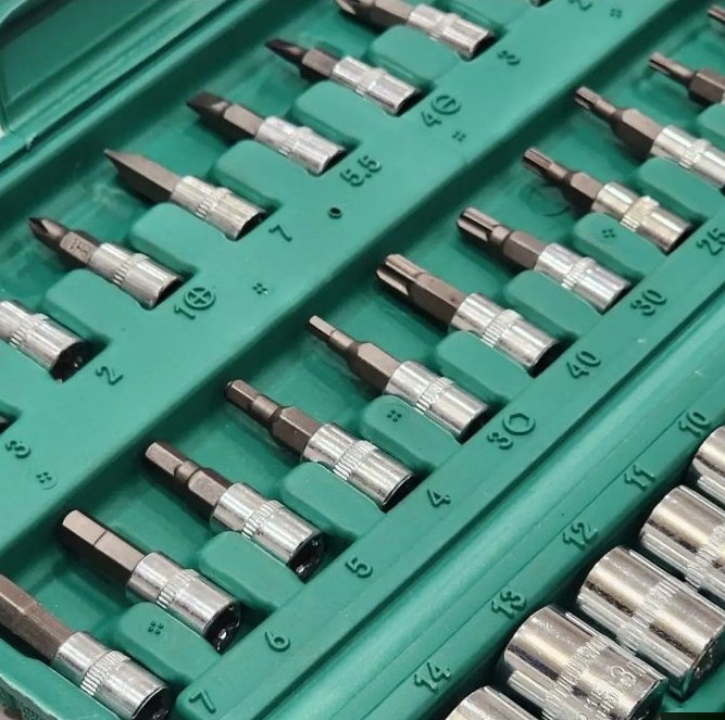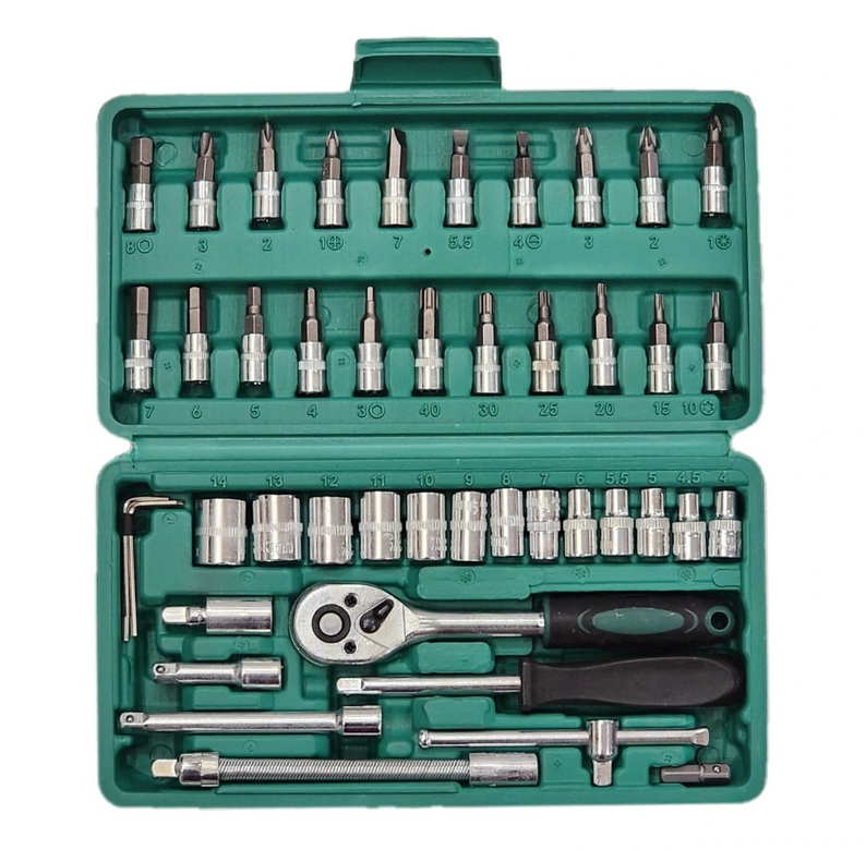 شامل سریهای متنوع، دسته بکس جغجغهای، دسته پیچگوشتی، رابط و آچار کشویی است. مناسب برای تعمیرات خودرو، لوازم خانگی و کارهای فنی روزمره.