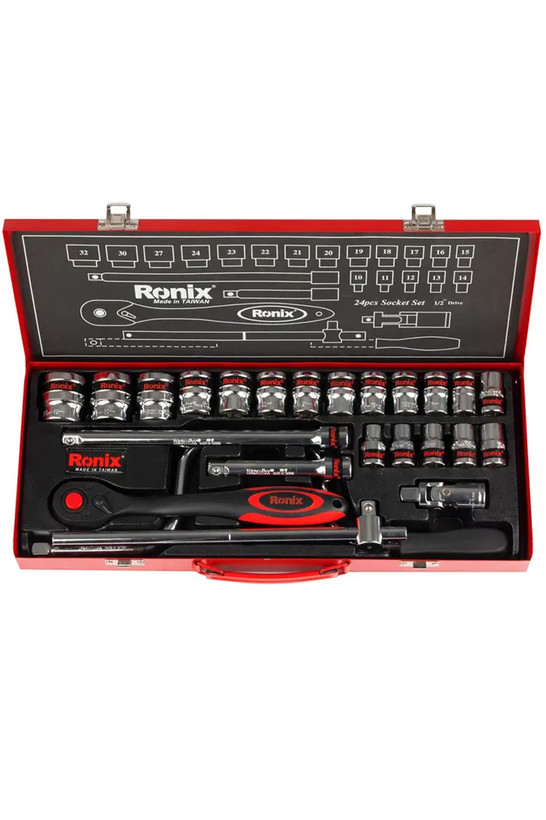 جعبه بکس 24 عددی 1/2 اینچ رونیکس مدل RH-2624، همراهی حرفهای و مقاوم برای شما است و از مواد باکیفیت سختکاریشده با گشتاور بالا تولید شده است. سوکتهای این مجموعه بکس ساخت تایوان، از فولاد کروم وانادیوم با روکش آینهای ساخته شدهاند که مقاومت بالایی در برابر زنگزدگی و خوردگی فراهم میکنند.