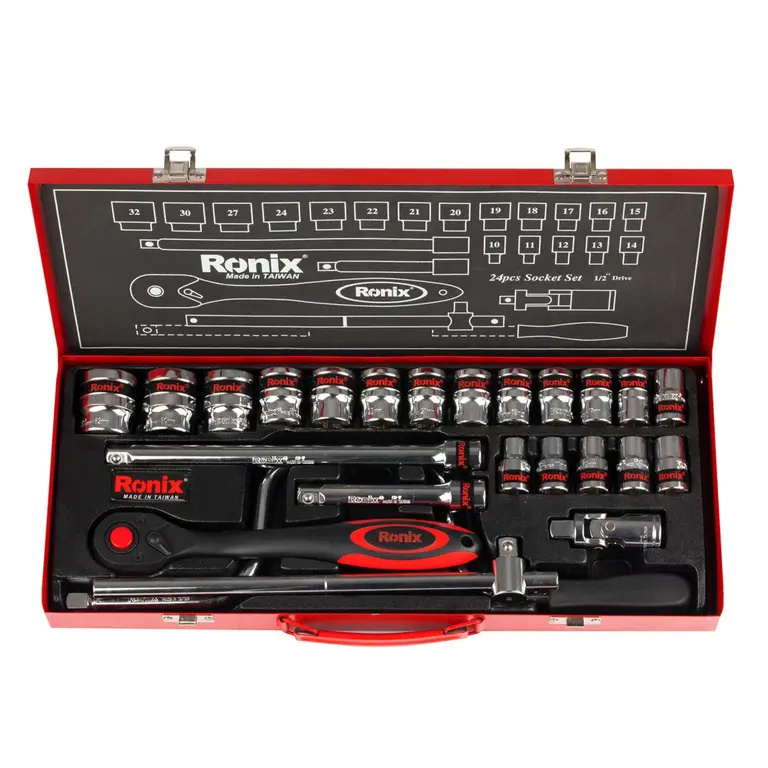 جعبه بکس 24 عددی 1/2 اینچ رونیکس مدل RH-2624، همراهی حرفهای و مقاوم برای شما است و از مواد باکیفیت سختکاریشده با گشتاور بالا تولید شده است. سوکتهای این مجموعه بکس ساخت تایوان، از فولاد کروم وانادیوم با روکش آینهای ساخته شدهاند که مقاومت بالایی در برابر زنگزدگی و خوردگی فراهم میکنند.